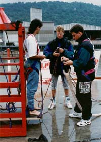 Als erstes hab ich mir das Bungee Jumping ausgesucht (wir sind damals mit dem SL-Sportstudio ca. 30 Leute ) und ich kann euch sagen ich habe so richtig die Hosen voll gehabt, aber der Kick als ich mich dann fallen ließt ist einfach geil gewesen.