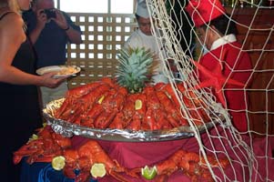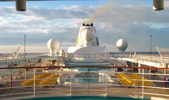 sind wir diesmal pünktlich so gegen 17 Uhr an Bord des Schiffes gegangen, kurz nach Ankunft hörten wir dann ein allzubekanntes (nicht gerade leises) Lachen, das eindeutig zu unserer Melanie gehörte. ( Melanie,Markus + Rest hatten schon eine Woche Urlaub auf Mallorca hinter sich gebracht) also waren wir jetzt komplett. Am Abend hatte Markus uns dann gleich ins Maritim-Restaurant (5 Gänge Menü (so richtig schnieke) ) an Bord der Aida eingeladen um gemeinsam mit uns seinen 27. Geburtstag zu feiern. Abends war natürlich dann nach dem Auslaufen des Kahns die Willkommens Party an Deck mit Lasershow und allem "Schnick schnack" angesagt und da wir ja alle keine Kinder der Traurigkeit waren, ging diese Nacht sehr lustig