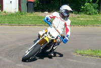 am Sonntag (Muttertag) dem 13.05.2001 wurde in Esslingen-Sirnau auf dem Verkehrsübungsplatz ein kleines nettes Fest mit Liveübertragung von Supermot-Rennen übertragen. Und da mein Kumpel Frank Herrenmann (fährt mit seinem Beifahrer und Freund Heinze auch aktiv Rallye) neuerdings die Duke (KTM) von seiner Freundin über den Sirnauer-Kurs jagt und dazu noch am Ausschank tätig war konnte ich mir diesen Ivent natürlich nicht entgehen lassen. Supermot fahren hat ja schon vor langer Zeit mein Interesse geweckt und ich bin mir sicher das ich mir bis nächstes Jahr wenn ich mein Fuhrpark verkleinert habe auch an einer SM-Kiste nicht vorbeikomme. Bla, Bla, Bla, Bla ...............................(die frage ist nur ob ich mir gleich eine ohne rennmäßige Straßenzulassung oder mit kaufe). Auf jeden fall muß ich sagen das die Jungs da unten echt supernett sind und es hat richtig Spaß gemacht denen beim fahren zuzuschauen.