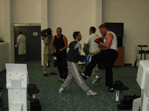 wir uns zum Showdown im Sportraum der Pyramide zum A...Arschvoll kriegen. Klar,