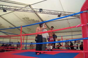 Art kleine Gala aufgezogen wo auch Thai-Box-Kämpfe, Fullkontakt mit Lowkicks