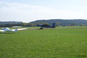 in Stuttgart waren, landeten nun mit ihrer kleinen Sportmaschine auf dem Flugplätzchen.