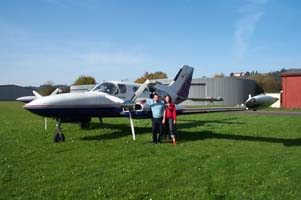 standen wir dann endlich vorm Flieger eine zwei motorige Cessna 420. Ab diesem