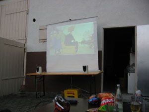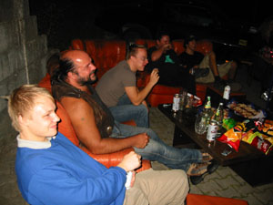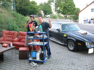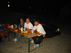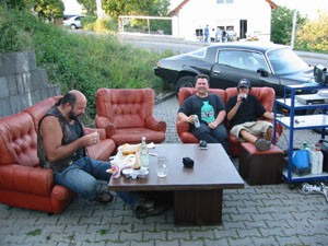 war das " Goooooiiiiiiiiiiiiil " Männerabend in der Mopedgarage Bissingen nur mit Kumpels, affengeilen Temperaturen & Dosenbier. O.K. mein Schatz s' Luisle hatte 30 min Besuchsrecht um den Kuchen zu bringen ! " Hi, Hi.............